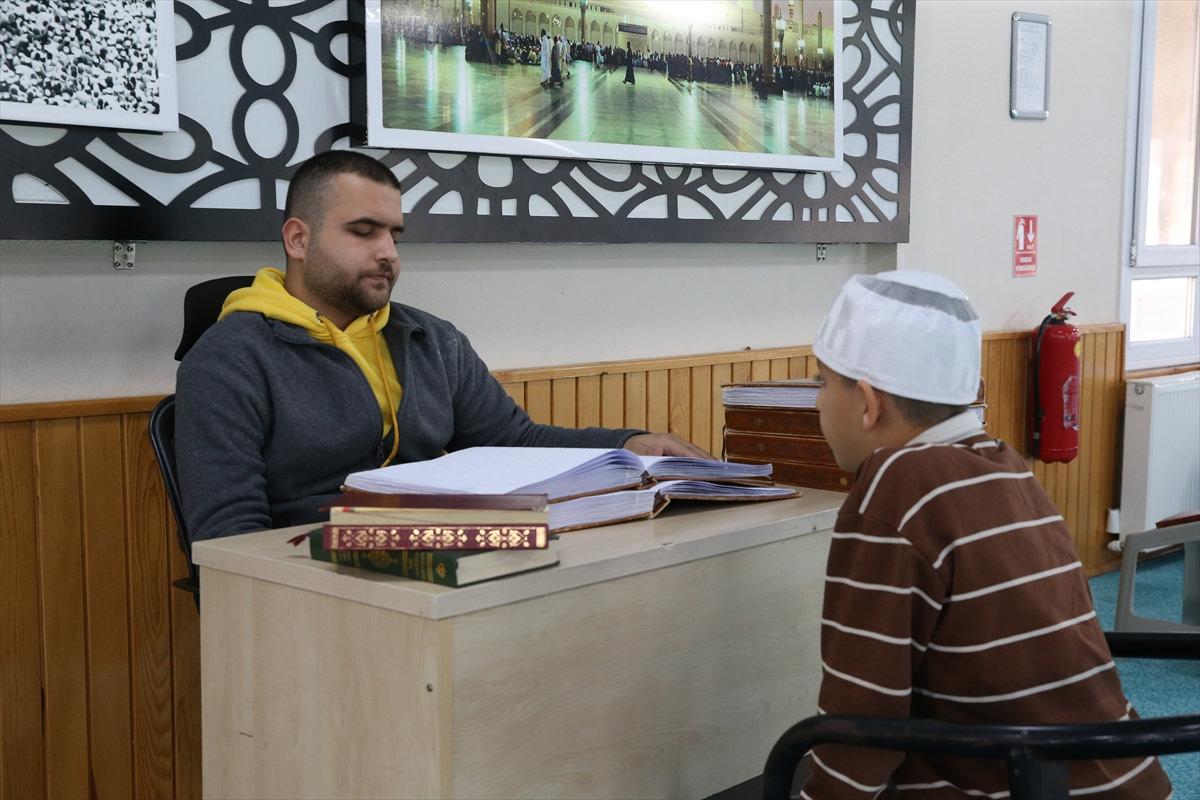 Hatay’ın Belen ilçesinde kabartma yazıyla Kur’an-ı Kerim’i ezberleyip hafız olan 26 yaşındaki görme engelli Abdulkadir Akdağ, göreve başladığı kursta çocuklara kutsal kitabı öğretiyor.