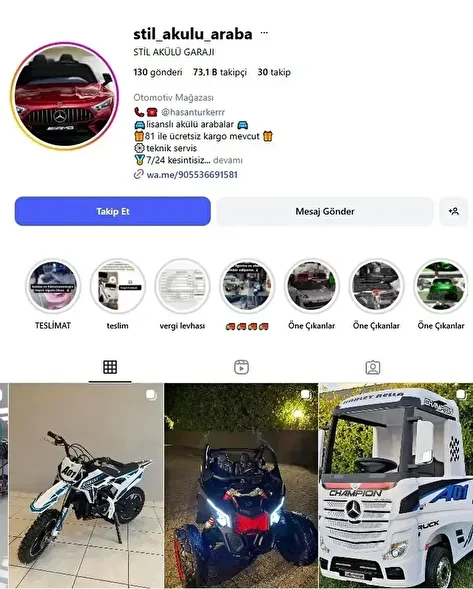 D.C., çocukları için Instagram üzerinden akülü araç almak isterken “stil_akulu_araba” adlı sayfayla iletişime geçti. Sayfanın 30 bini aşkın takipçisinin olması ve “Hasan Türker” adına düzenlenmiş vergi levhasının sabitlenen hikayelerde yer alması, D.C’nin güvenini kazandı.