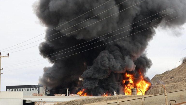 Fabrikanın kimyasal madde üretimi veya depolama bölümünde başlayan yangın kısa sürede büyüdü.